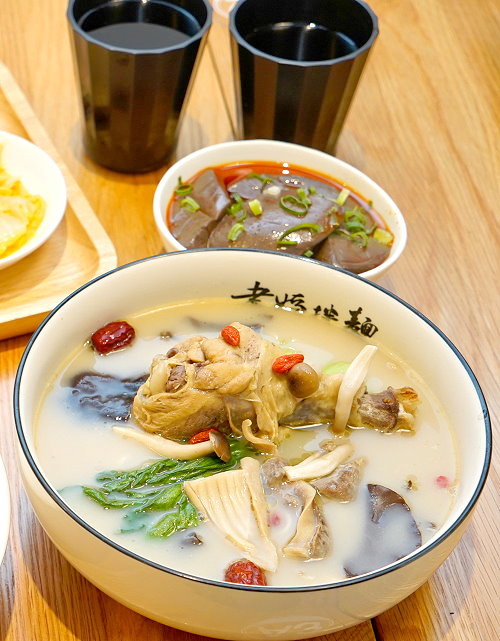 ▼沒多久餐點上桌啦~~我們點了花雕雞湯麵套餐、椒麻牛肉拌麵、胡椒豬肚雞麵等麵食,另外還點了麻辣鴨血、椒麻抄手來享用!