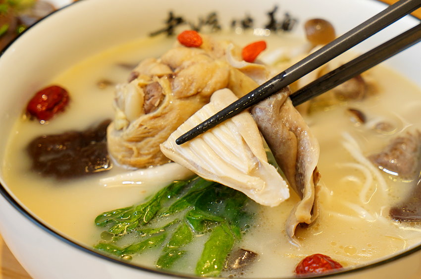 ▼胡椒豬肚雞麵,採用豬大骨、雞骨、中藥材、雞腳等食材下去慢火熬煮六小時,上頭再鋪上燉煮至軟嫩的豬肚、一整隻雞腿,看起來頗為霸氣;這道餐點是限時提供,只販售到今年12月底,有興趣的朋友也可以直接上MOMO或是之後也可以在老媽拌麵官網訂購到喔!