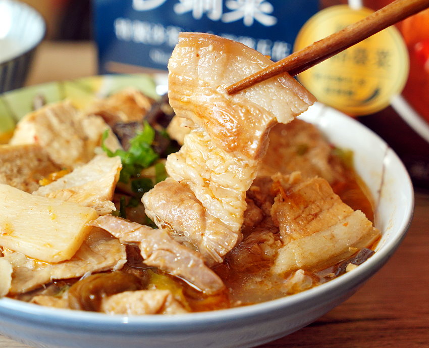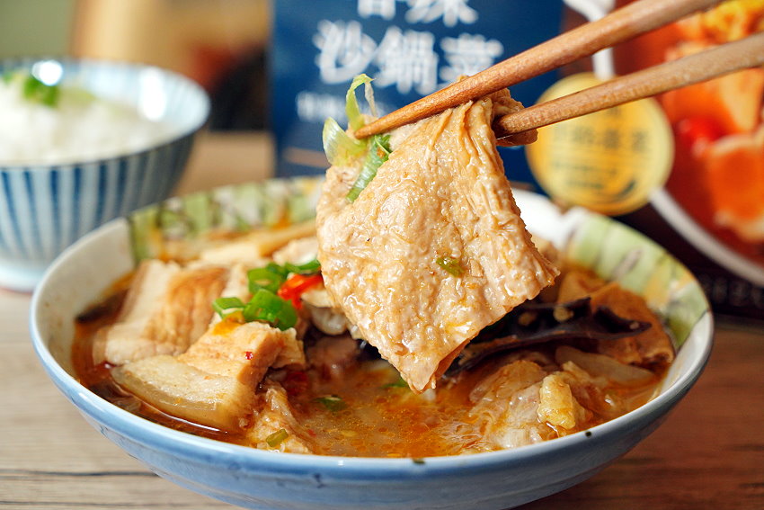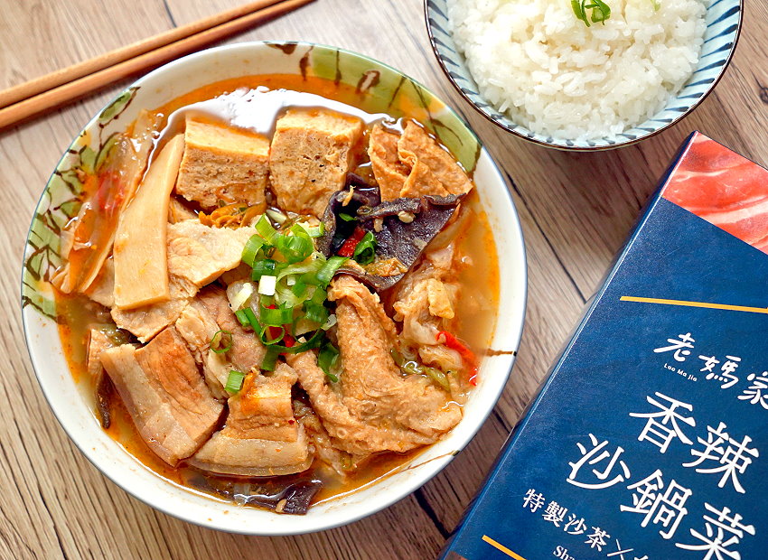 ▼香辣沙鍋菜裡頭有豆皮、凍豆腐、筍乾、木耳、大白菜、豬五花等滿滿好料,搭配濃醇的沙茶醬與特製麻辣醬更是超夠味!