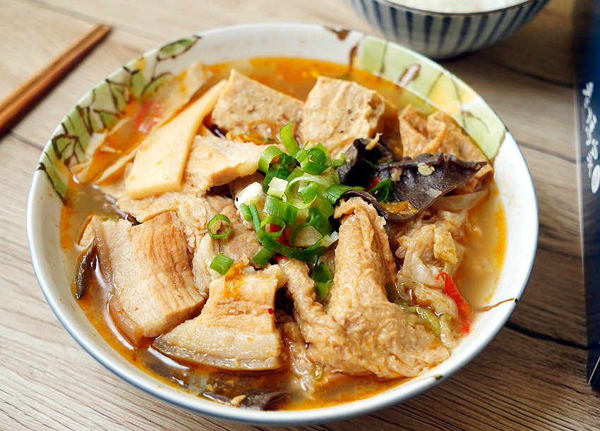▼最容易吸取湯汁的豆皮吃起來果真軟嫩又帶點麻辣味蕾,整個好下飯!