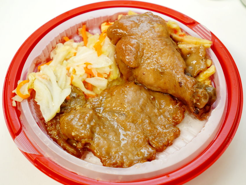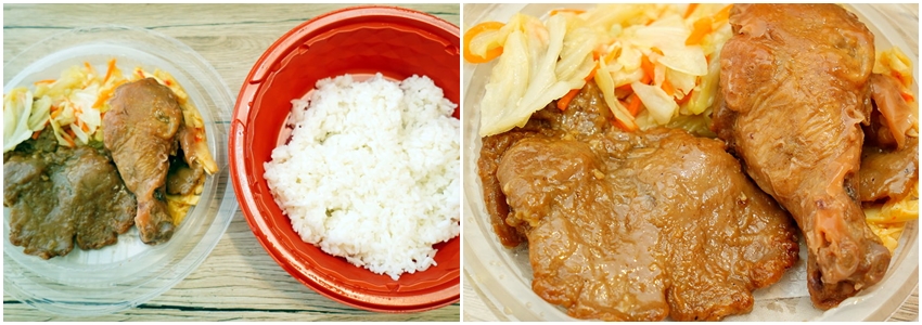 ▼雞腿滷至入味、排骨帶點厚度,兩種都還不錯吃,雙拼主菜吃起來就是過癮,清甜的高麗菜帶有蒜香,搭配開胃的筍乾很合拍,吃起來也挺有飽足感!