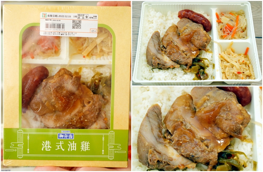 ▼港式油雞便當,油雞吃起來沒有燒臘店那麼軟嫩但也還算柔軟好咬,蒜味香腸吃起來挺討喜,其他兩樣配菜都滿合胃口,小菜也挺下飯的~~看起來賣相普通但吃起來其實還不錯,價位也滿實惠的!