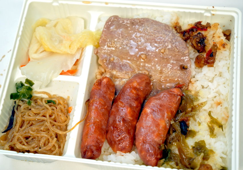 ▼這款蒜味香腸便當不僅有雙主菜,還有兩樣配菜、兩樣小菜,豐富度還不錯,而且都挺下飯的~~唯一小小可惜是香腸都只有半條,但帶有蒜味滿討喜的,喜愛香腸的朋友可以選這款!