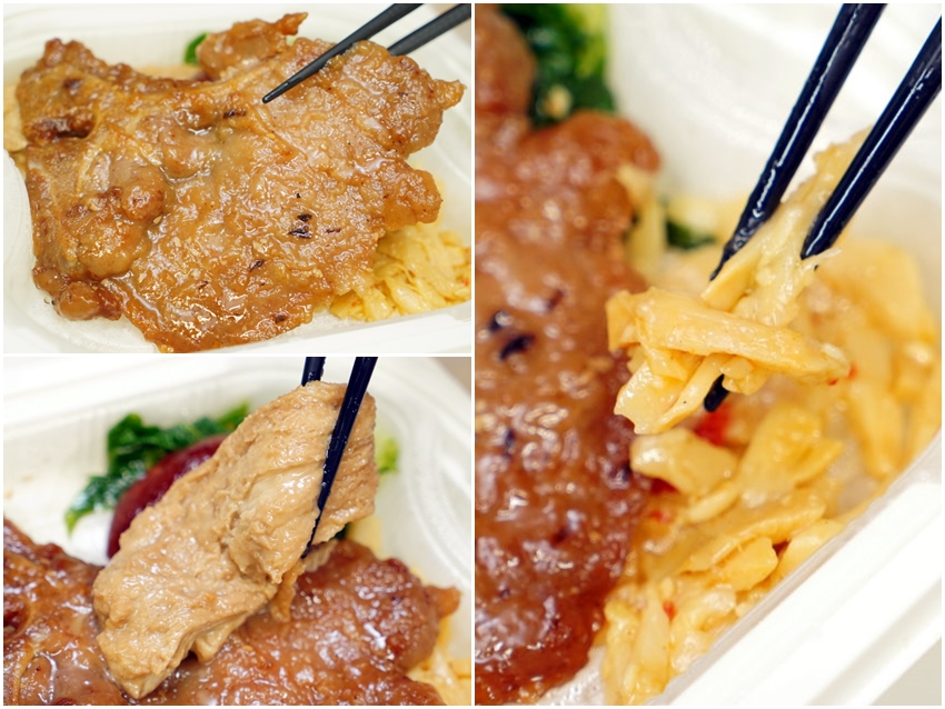 ▼相較於我很喜歡的”奮起湖雙拼便當”,這款軟燒肉便當在我心目中幾乎不相上下的好吃,雞腿換成了香腸、配菜風味不同,卻也下飯好吃! 筍絲也很討喜!