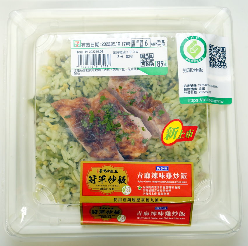 每年都會推出的炒飯王是由當屆冠軍得主授權便利商店來製作,有時候是全家,有時候是小七來推出,今年冠軍以青麻辣味雞炒飯勝出,帶著鹹甜風味與辣度適中的炒飯,似乎吃得到一些酸菜與特殊配料來提升風味,口味算是好吃值得一試!