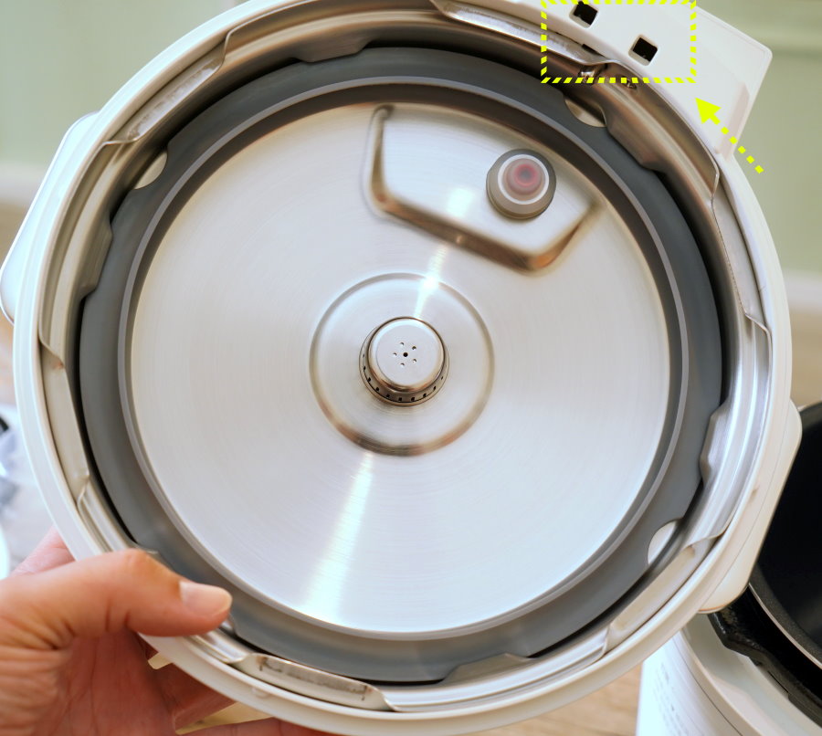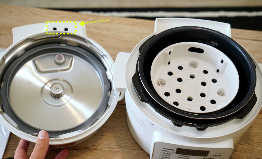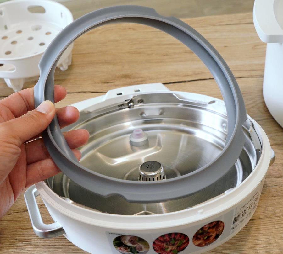 ▼這一台Iris電子壓力鍋結合電子鍋、壓力鍋、電火鍋、蒸籠等四大功能,不過對於常使用來煮湯的朋友們,可能會像我一樣非常注重鍋蓋的清洗方便度,Iris的鍋蓋設計簡易,沒什麼死角,膠條也方便取下,算是非常好清洗,可惜上蓋蒸氣排水設計有兩個孔洞是密閉的,烹調時的水蒸氣或清潔時的水流很容易流進去就卡住出不來(如果煮湯太滿或洩壓太快也容易讓湯品跑進去),清理上也要特別留意!