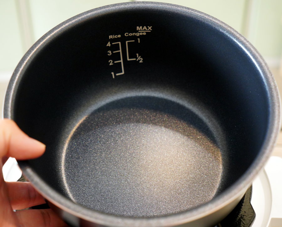 ▼內鍋採用鋁合金材質,滿水位只有2.2L,煮飯的話最多能煮4杯米,煲湯的話相對容量就少了一些~
