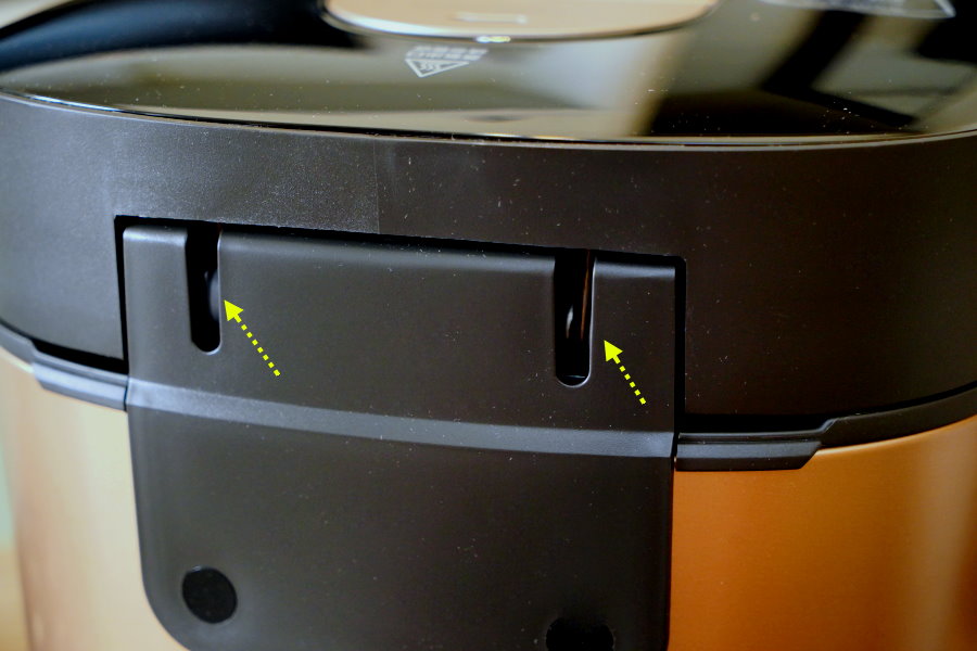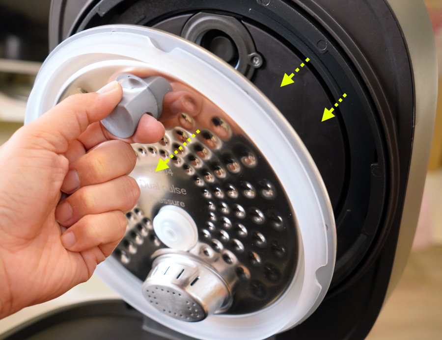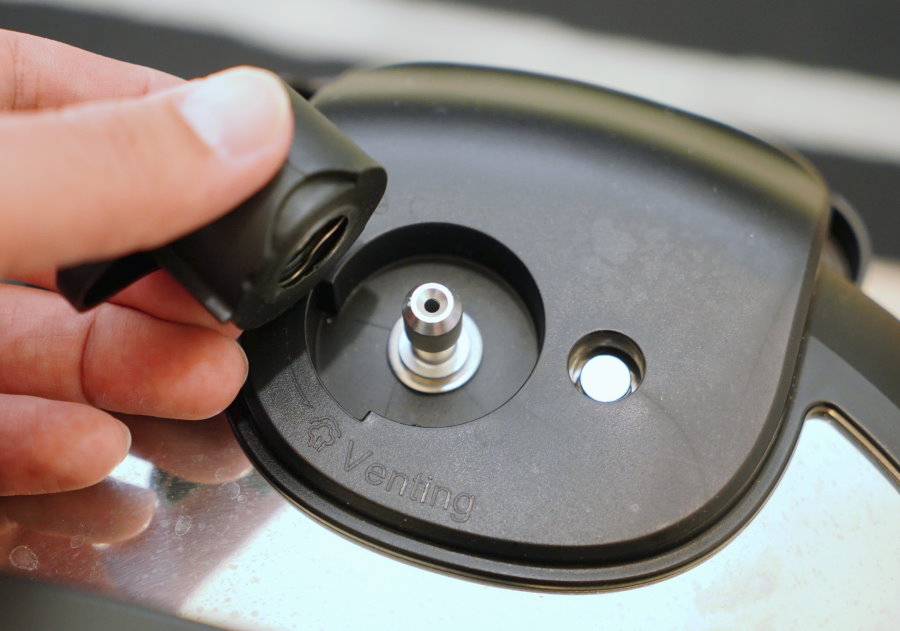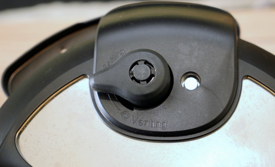 ▼上蓋附有手動排氣閥,烹調時記得先調製密封狀態,等到烹調完畢再調至排氣洩壓~不過也因為蒸氣相當滾燙,大家洩壓時記得要墊條抹布或隔熱手套,多注意安全!