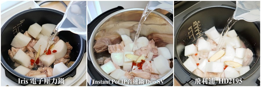 ▼接下來要針對這三款壓力鍋來進行實測啦~大口就來煮個蘿蔔雞湯,看看料理成果有沒有什麼差異!