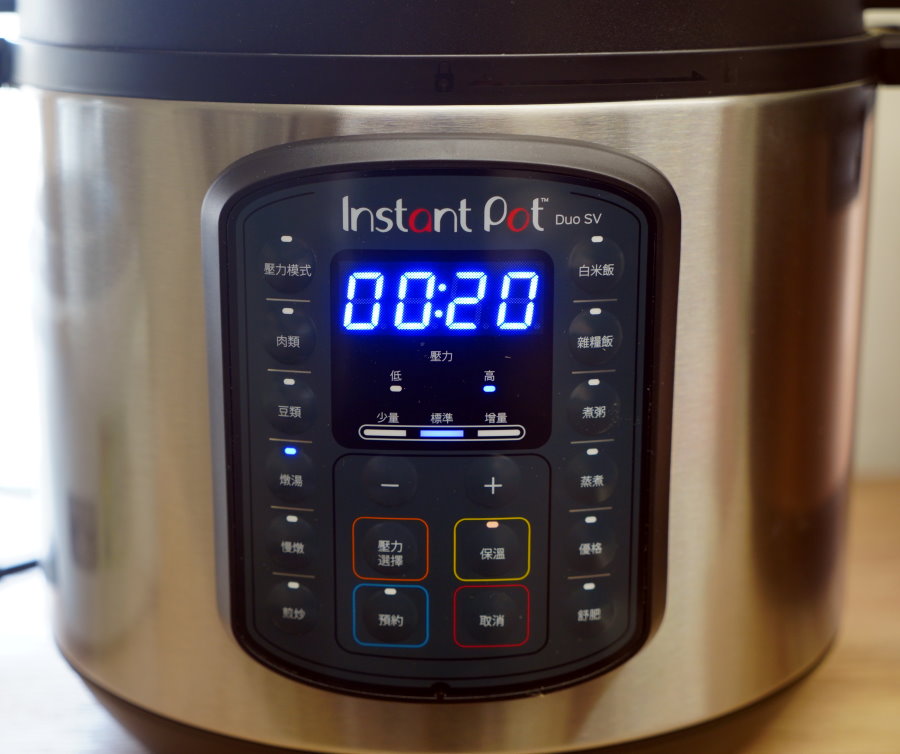 ▼IP音速鍋,設定燉湯模式後,螢幕出現的時間為20分鐘,算是裡頭最短的~