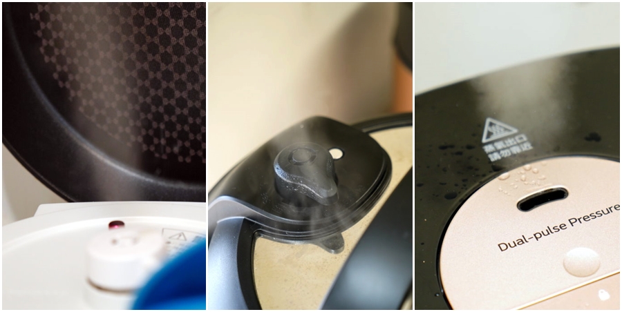 ▼基本上這三台都先花了20~25分鐘升壓,再開始計算烹飪時間,洩壓的部份則是比較特別,Iris電子壓力鍋則是需要手動洩壓,所以記得要戴好手套或準備抹布比較安全;IP音速鍋也是手動洩壓(湯品類別建議自然降壓後再開啟),等到浮子閥降落就代表洩壓完成,可以開蓋享用啦! 金小萬則是會在烹飪時間剩10分鐘左右開始洩壓(花費時間視每次容量使用不同),所以等到烹飪時間完成就代表真的煮好了,不用再另行洩壓,直接就可以開蓋囉!