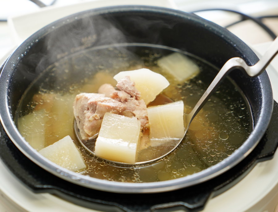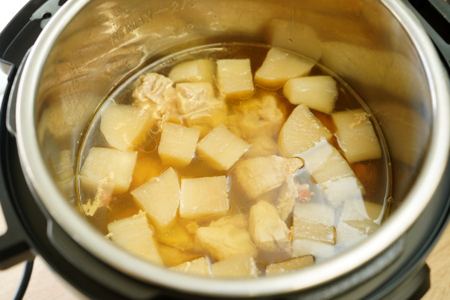 ▼IP音速鍋煮出來的蘿蔔雞湯看起來更厲害了~湯頭帶點黃澄澄的模樣,感覺就很入味啊!