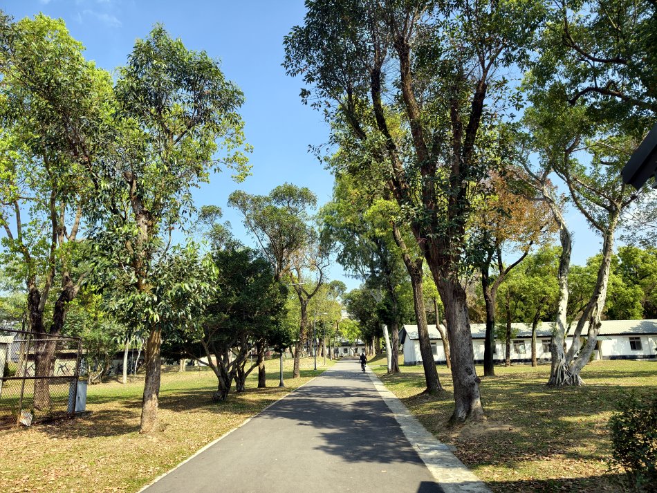 ▼道路兩旁跟營舍都被高聳的樹木包圍,很適合來健行散步!