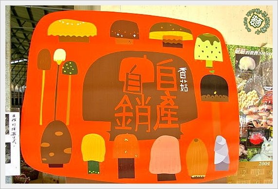 在新社沿路可以看見許多販售香菇的攤販或店家,由此可知「菇」是這兒的特產,
