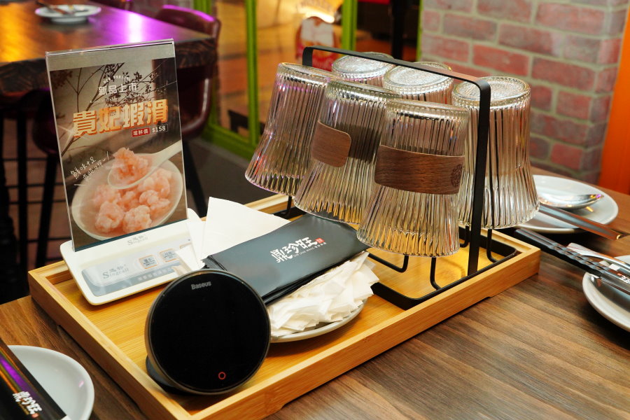 ▼桌上備有餐具、水杯、紙巾、濕紙巾、計時器、服務鈴等,讓客人取用更加方便!