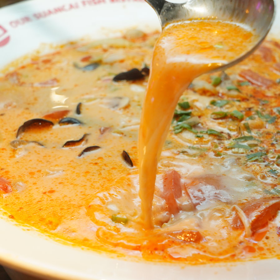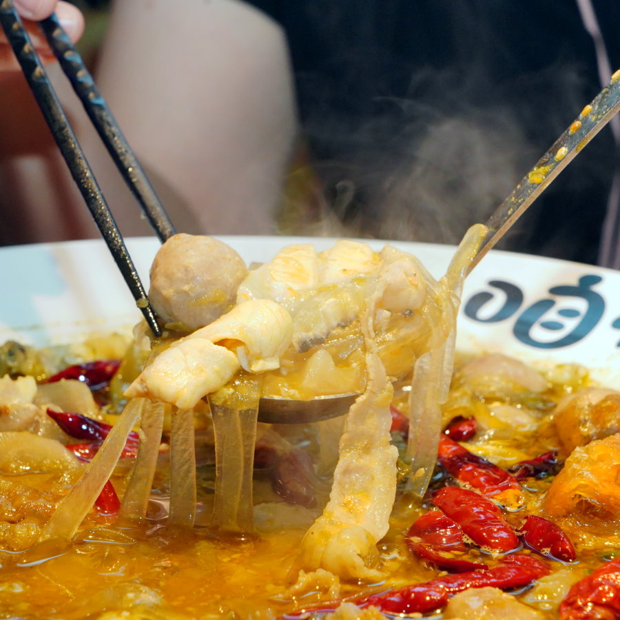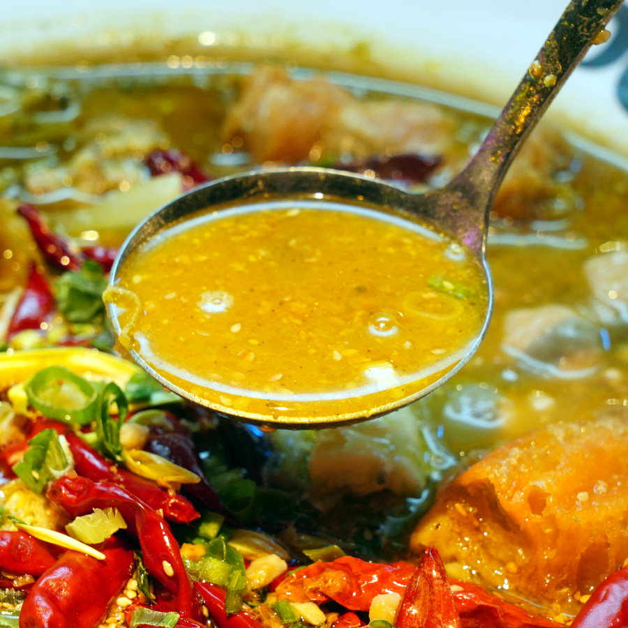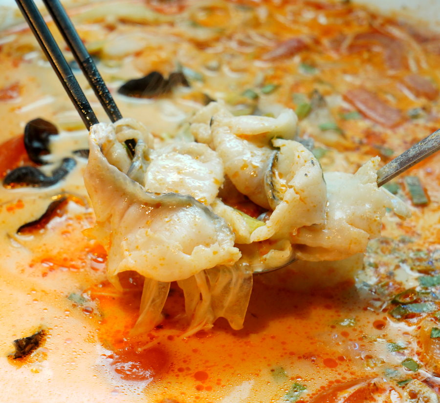 ▼這款湯頭很適合平常只吃小辣的朋友,既能吃到鮮香麻辣的香氣,還帶有酸爽甘醇的層次感,不管涮煮魚片或肉片都很適合。