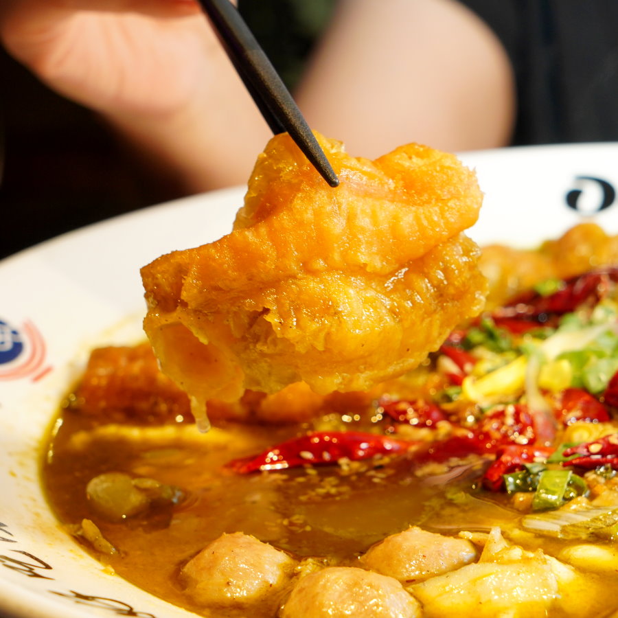 ▼吃起來薄酥又帶有魚皮的香氣,吸附湯頭後帶有迷人的奶香味,跟老油條又是截然不同的味道,也是推薦必點的一道。