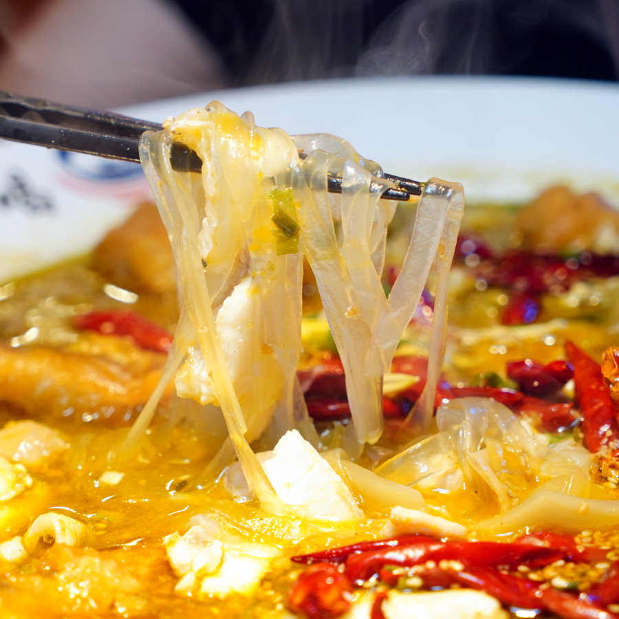 ▼裡頭還藏有寬冬粉,吸附湯頭後變得香Q滑順,酸香麻辣的味蕾很順口。