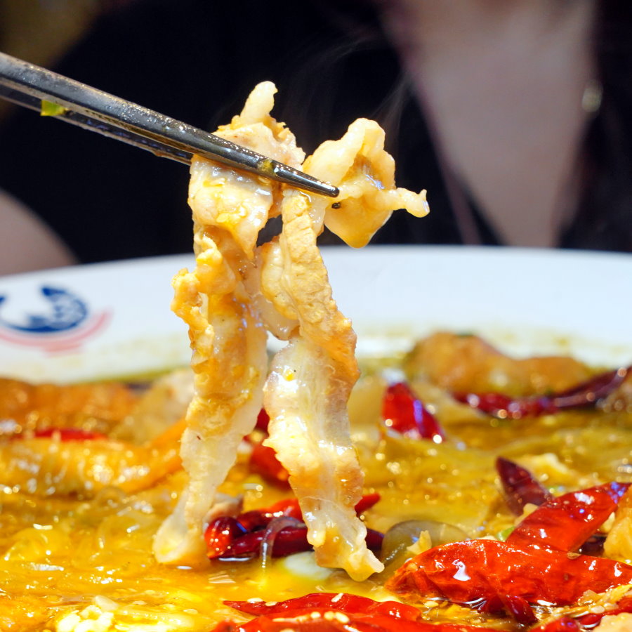 ▼豬五花肉片吃起來香Q鮮美,搭配酸香麻辣的湯頭完全不膩口!