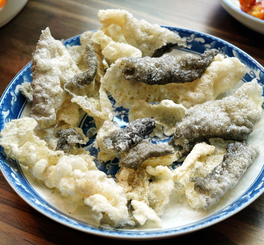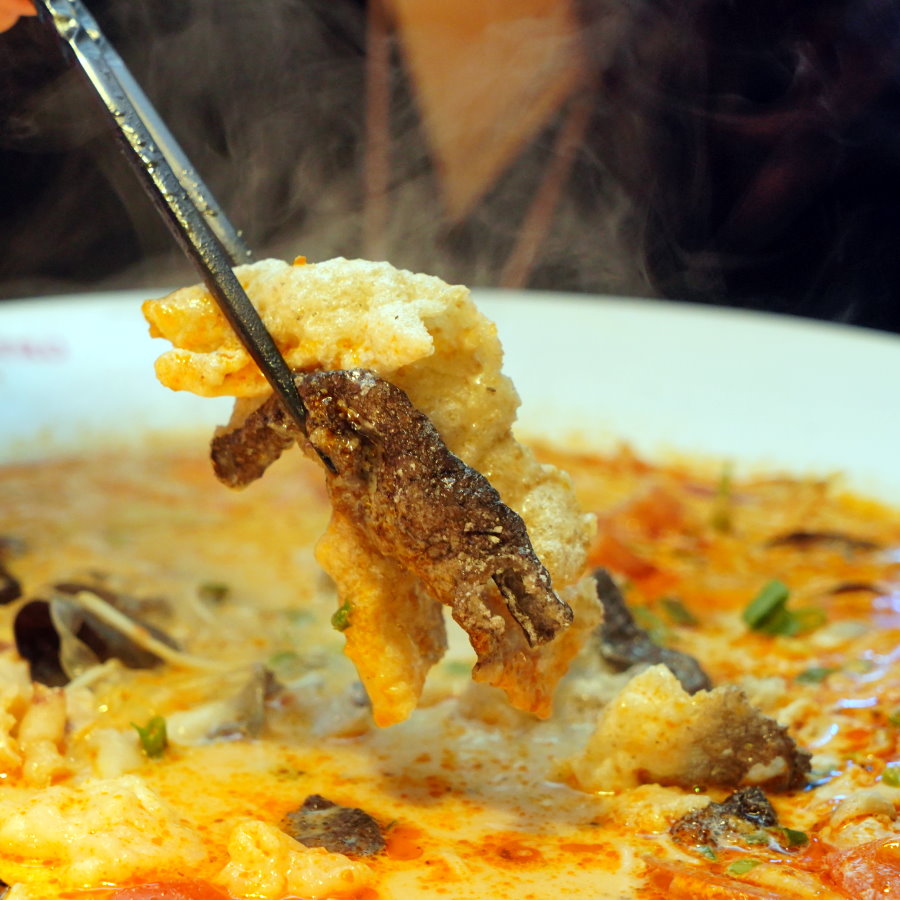▼必點的炸魚皮,這道邪惡的小東西一定要點來吃吃看才知道它的厲害~~搭配任何湯頭都很合拍。