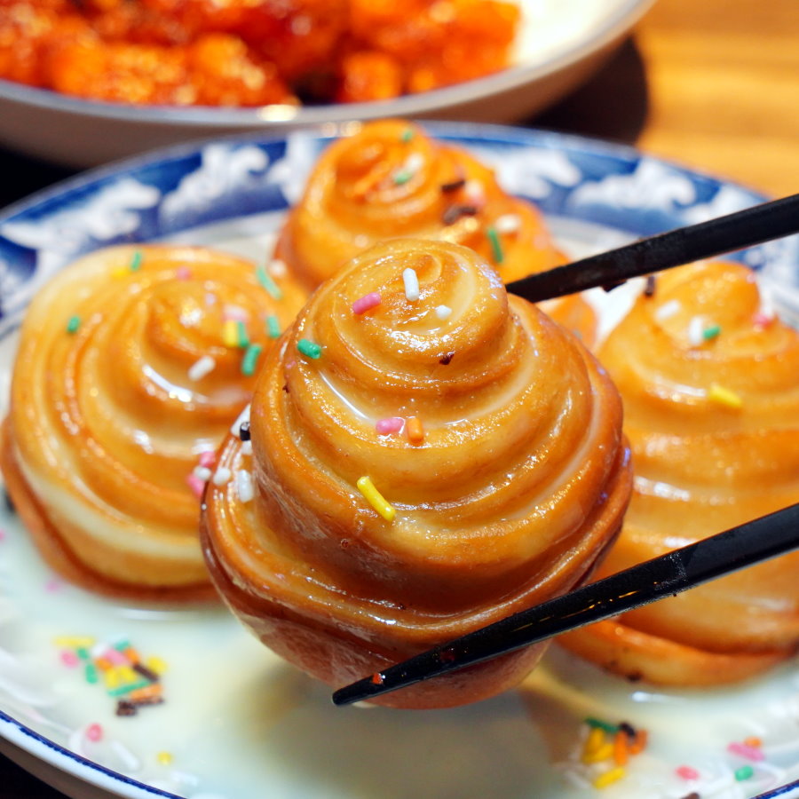 ▼煉乳銀絲卷,可愛的螺旋狀造型加上繽紛糖粒相當討喜,搭配煉乳更是香甜好滋味。