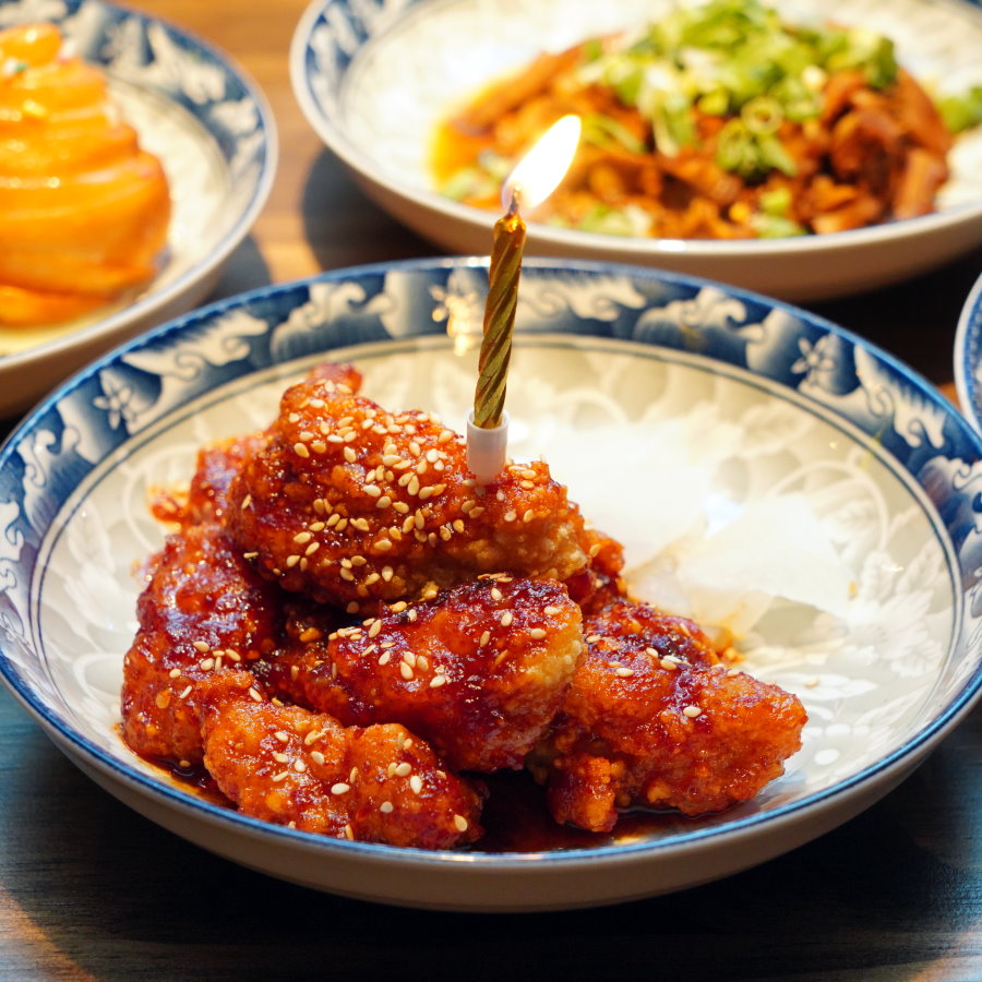 ▼壽星還有生日優惠,當週壽星來店用餐,即送炸雞蛋糕一份,上桌時服務人員還會幫忙點上蠟燭唷~~超有儀式感。(當週壽星以生日前後三天來計算)