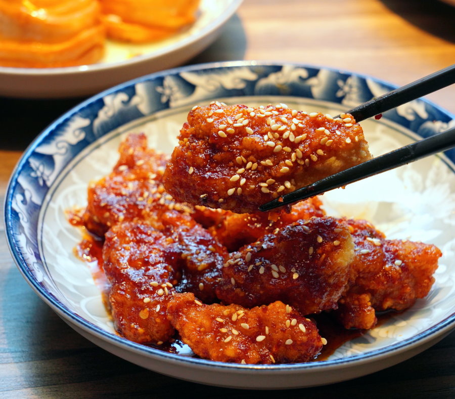 ▼炸雞蛋糕也就是韓式炸雞啦!吃起來帶有討喜的甜辣風味,酥嫩又美味。