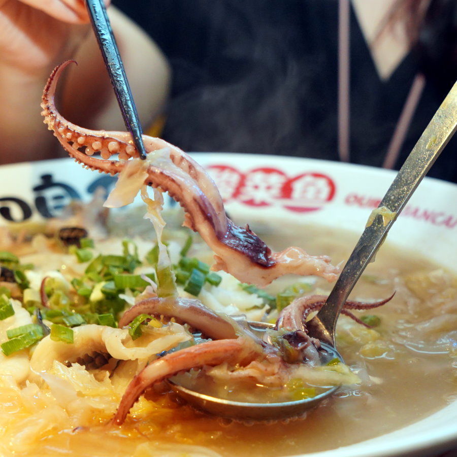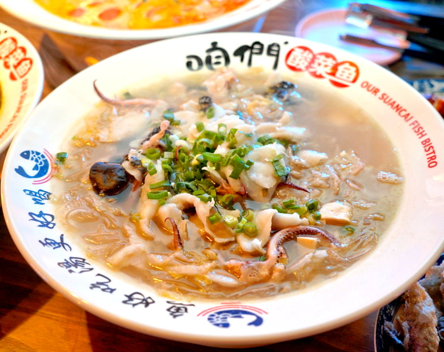 ▼生魷魚頭Q彈又鮮美,搭配酸香甘醇的湯頭也很對味,更能襯出鮮甜美味。