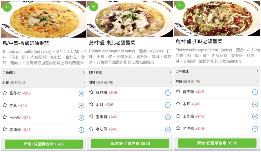 ▼這裡採用QR Code點餐,點選酸菜魚的話,也會標示裡頭的配料,大家就不會重複點到一樣的配料,也可以視個人喜愛加點配料了!