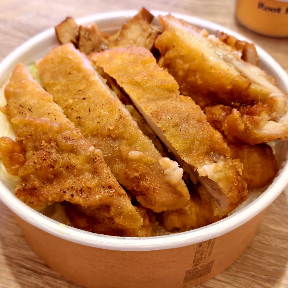 ▼雞腿排口感偏紮實,但還算是挺不錯吃的~~開胃又下飯。