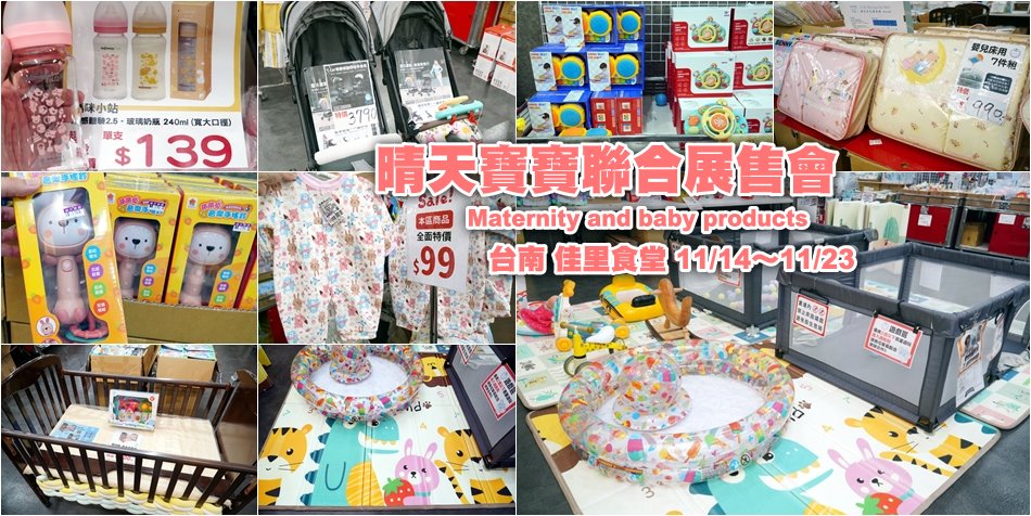 爸爸媽媽有福了,換季最適合來血拚~~晴天寶寶婦嬰用品聯合特賣會這次來到台南佳里忠孝東路上、佳里食堂內,活動日期從11/14~11/23(共10天),旁邊附免費停車場,買完婦嬰用品還可以順道逛百貨精品寢具、大列車牛仔褲,來一趟就能一次買齊!晴天寶寶購物即可免費索取新手爸媽攻略,準媽媽請攜帶媽媽手冊並加入APP會員,就能獨享肚圍99元(厚款、薄款通通有)、此外還能用299元加購酷咕鴨包巾,另外像是小獅王頂級奶瓶、小獅王消毒鍋、新款學習褲也有會員專屬優惠;本場限定優惠小鹿山丘葡萄柚籽低敏抗菌洗衣精只要299元(一瓶+3包)、酷咕鴨抗菌洗衣精3入389元、貝親奶瓶獨家任選3個999元、媽咪小站寬大口徑玻璃奶瓶139元,可說是市場最低價無誤!寶寶衣物更是實穿又超值,童裝99元、兩件式套裝129元,長褲50元、小褲褲3件99元、防踢被129元、防曬&保暖外套129元、長袖鋪棉套裝129元,台灣製品質更有保障!此外像是防水圍兜兜99元、台灣製口水巾2條100元也是超熱銷!NG品出清區只有小瑕疵不妨礙使用,防撞邊條、丹麥奶嘴等通通便宜賣,有需求的朋友記得來挖寶!外出旅遊必備的奶粉袋、母乳袋、睡袋、乾濕兩用巾、兒童繪本、玩具、防蚊用品等應有盡有;新款秒收圍欄也很厲害,可收納攜帶外出,不管是露營、旅遊都很實用。逛完婦嬰用品還可以逛百貨精品寢具枕頭買一送一、大列車牛仔褲399元起,特地來一趟都值得!