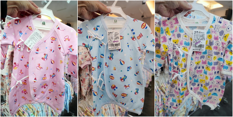 ▼這裡有各種包屁衣、蝴蝶衣、薄外套等,通通都是百元有找,對於新生兒來說實用又不貴!