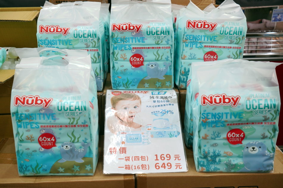 ▼Nuby極厚濕紙巾也是超級熱賣款,有嬰幼兒的家長都知道,濕紙巾是每天一定會用到的必備品,尤其這款又是純水加厚型,大尺寸的濕紙巾用起來更加方便不沾手,現場任選4包169元、16包649元,買越多越划算!