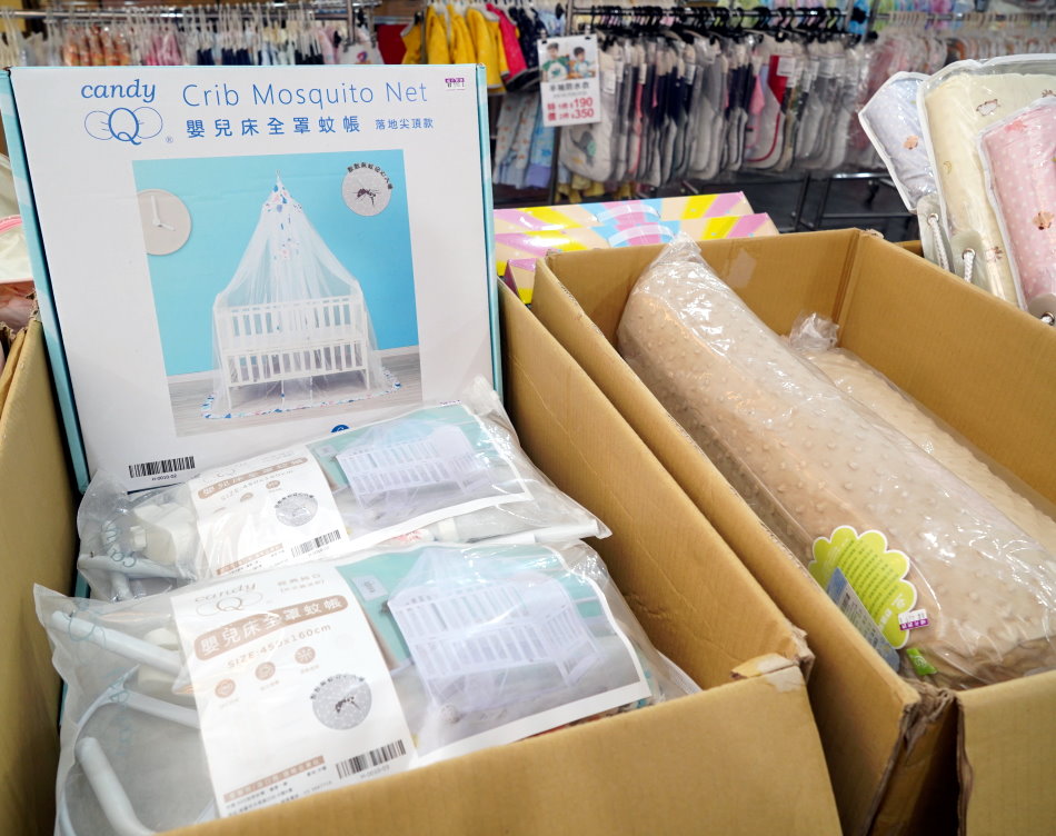 ▼另外像是寢具、床墊、睡袋、安撫枕通通有,來一趟就能一次買齊;嬰兒床用七件組原價2000多,現在特價990元很超值。