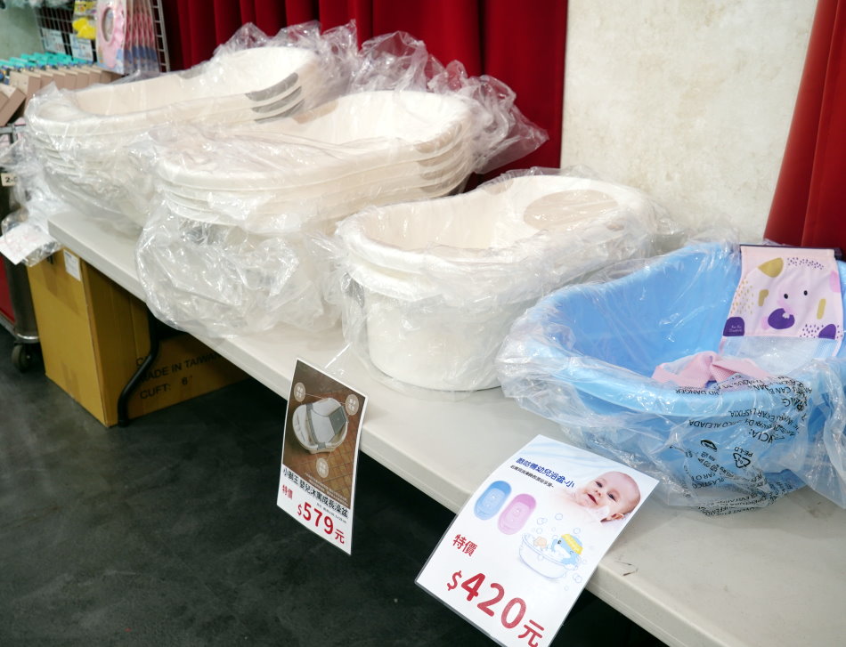 ▼現場還有浴網、洗頭浴帽、澡盆、摺疊澡盆、浴巾等,不管是在家或攜帶出遊都很方便!