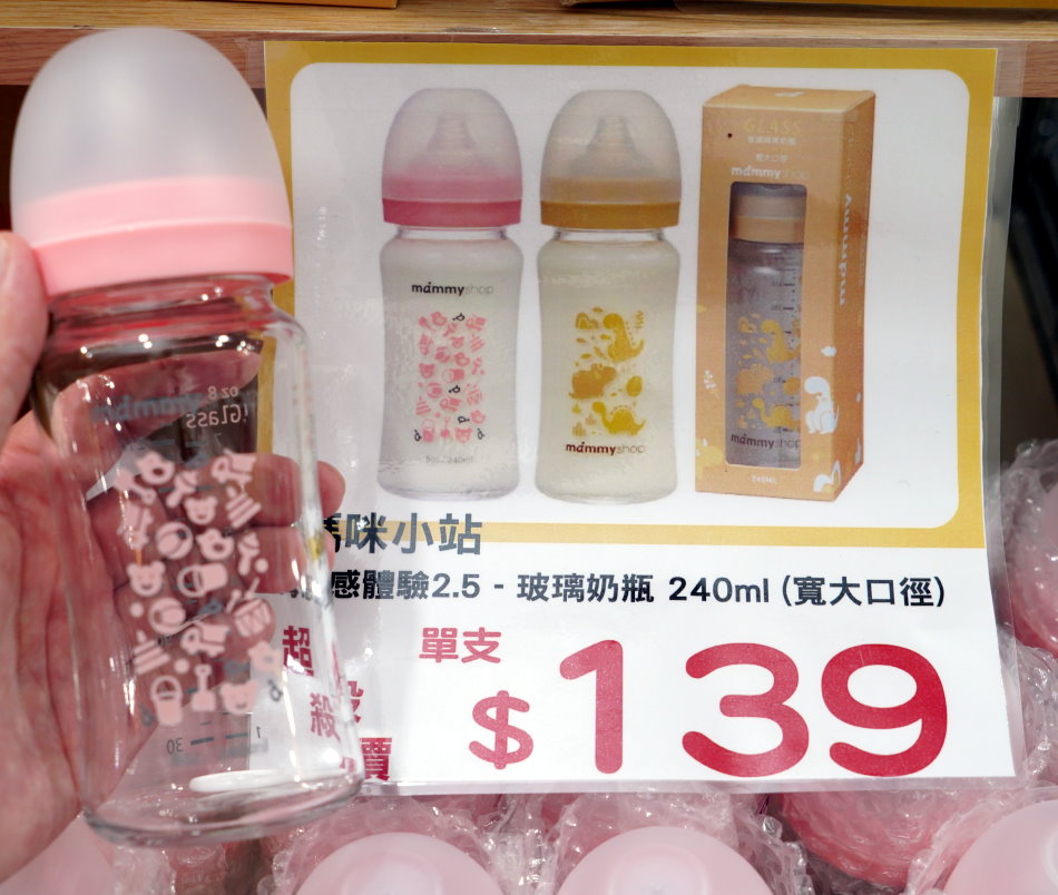 ▼媽咪小站寬大口徑玻璃奶瓶特價只要139元,真的是超殺價無誤。