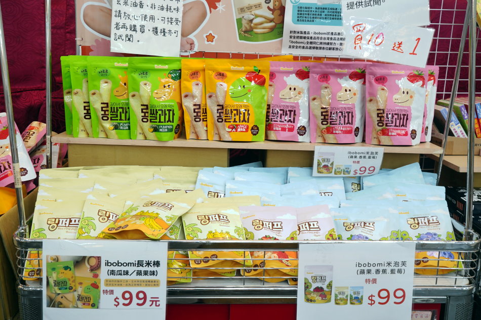 ▼現場還有韓國米餅、米棒、米泡芙等,特價99元,讓小朋友都能吃得開心又放心!