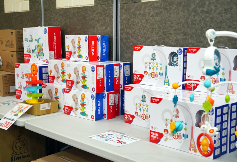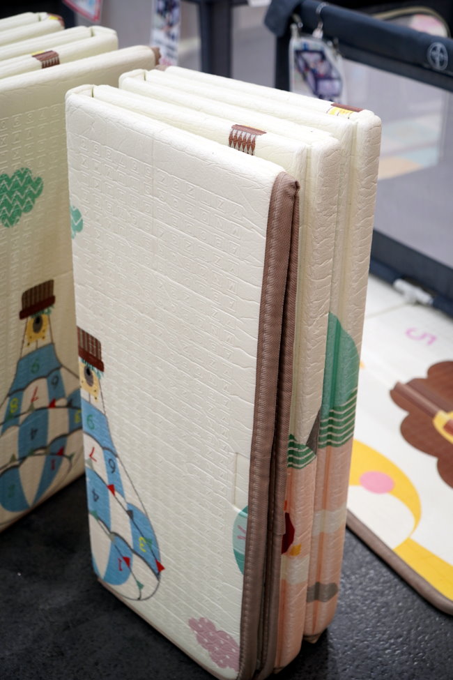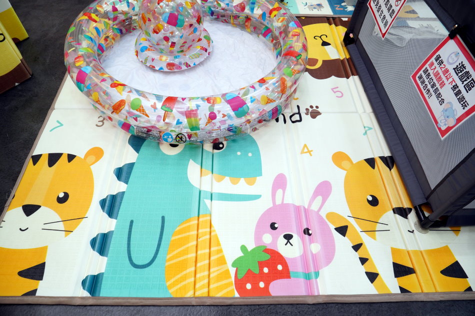 ▼用於遊戲區的雙面摺疊地墊也是超熱賣,上頭也有展示充氣泳池、玩具等,大家都可以實地感受一下!