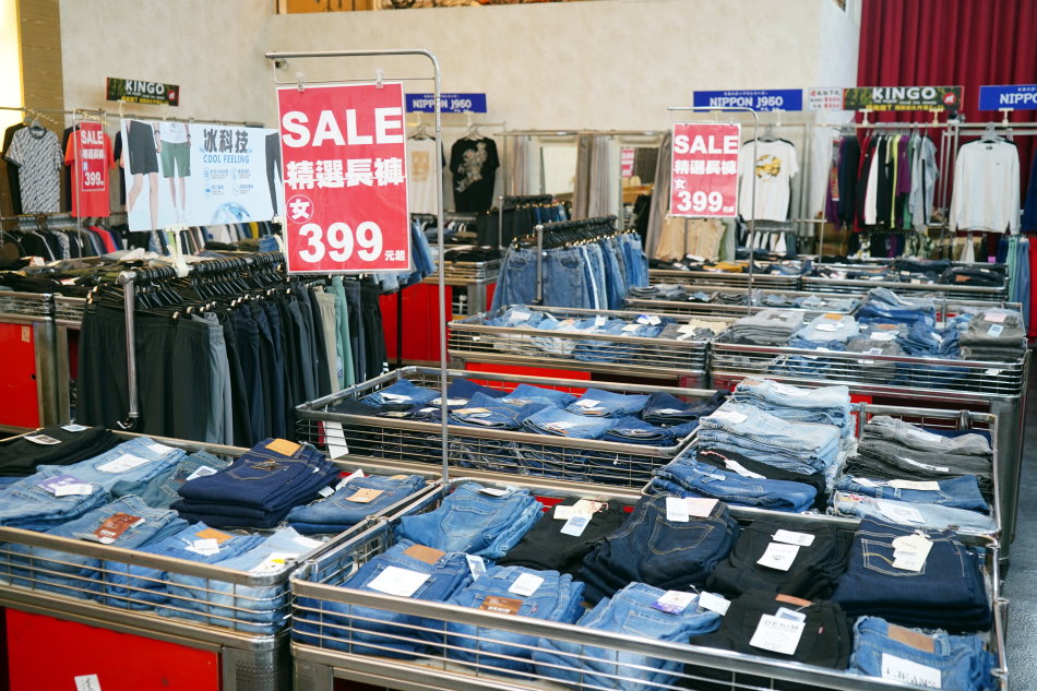 ▼現場有潮牌服飾、牛仔褲、上衣等,最低399元起,品質好又不貴!