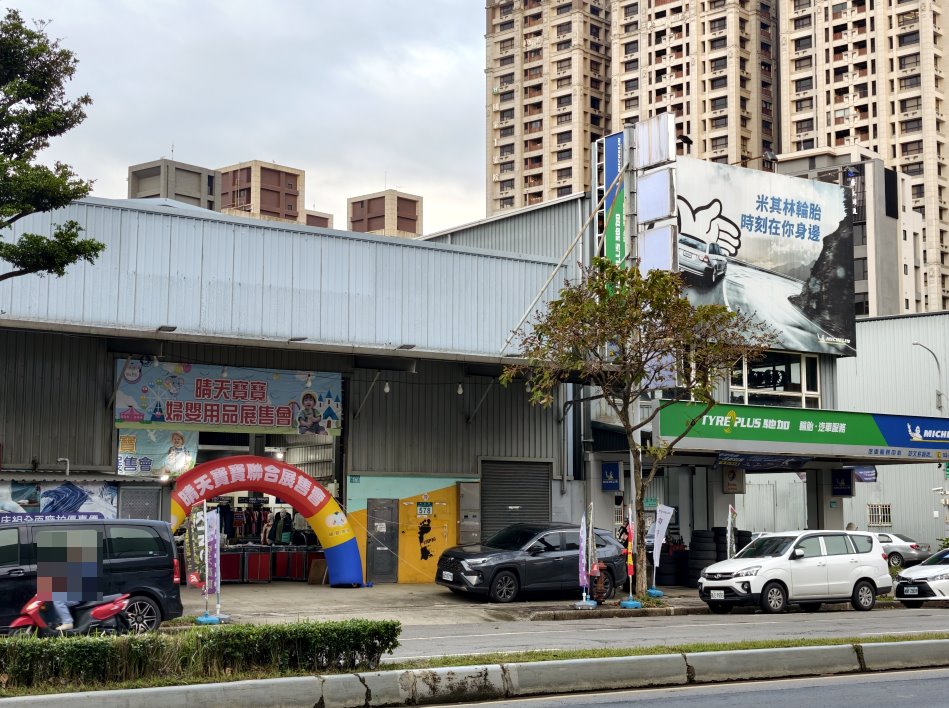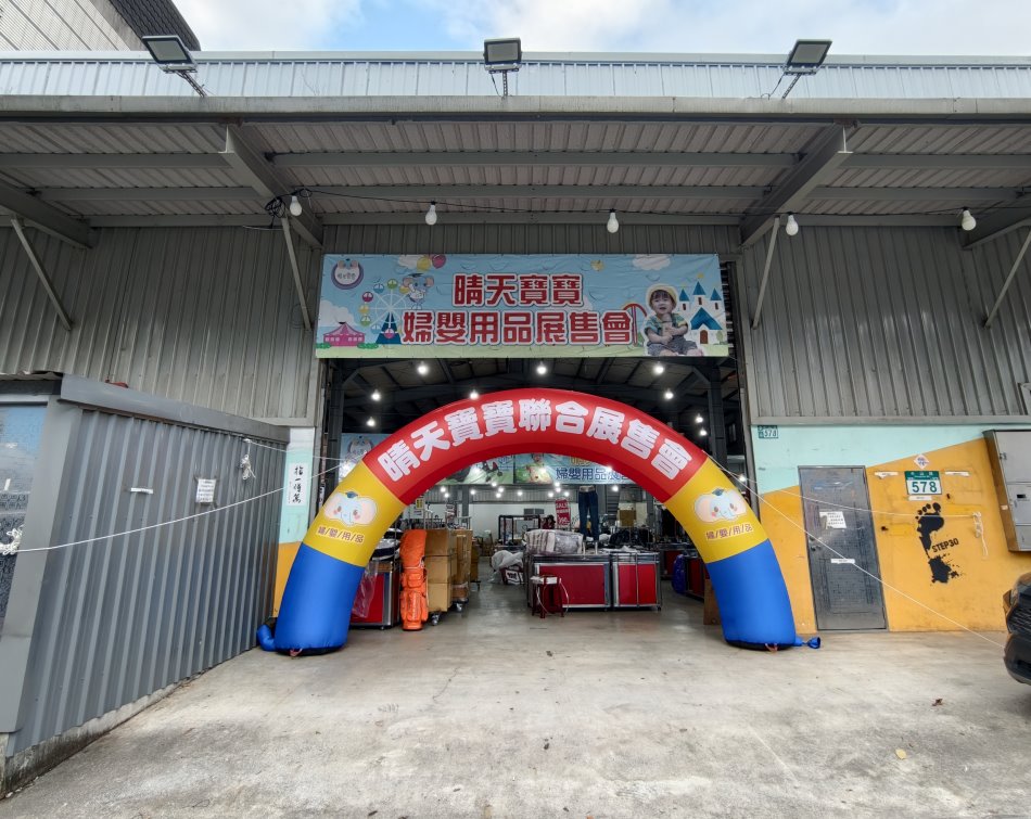 ▼「晴天寶寶婦嬰用品聯合特賣會」位於新北林口中山路上、動態羽球館對面,門口有大大的氣球拱門,看到就代表特賣會到囉~~路邊有不少停車格,還算是相當好停,如果停滿也可以找附近的付費停車場。