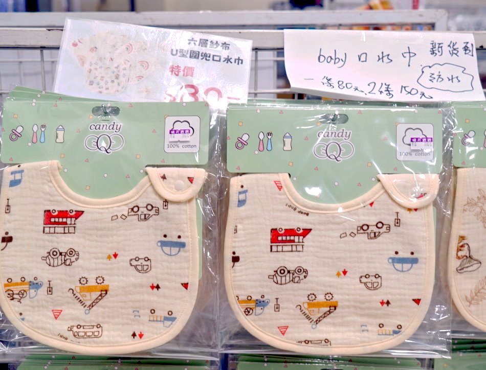 ▼質感超好的口水巾任選兩條150元,圖案選擇也相當多元。