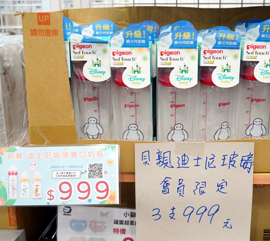 ▼貝親迪士尼玻璃寬口奶瓶獨家優惠,只要加入晴天寶寶APP會員就能享專屬折扣,任選3支只要999元,真的很超值啊!(每人限購一次)