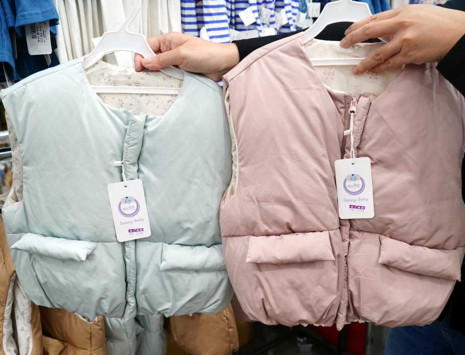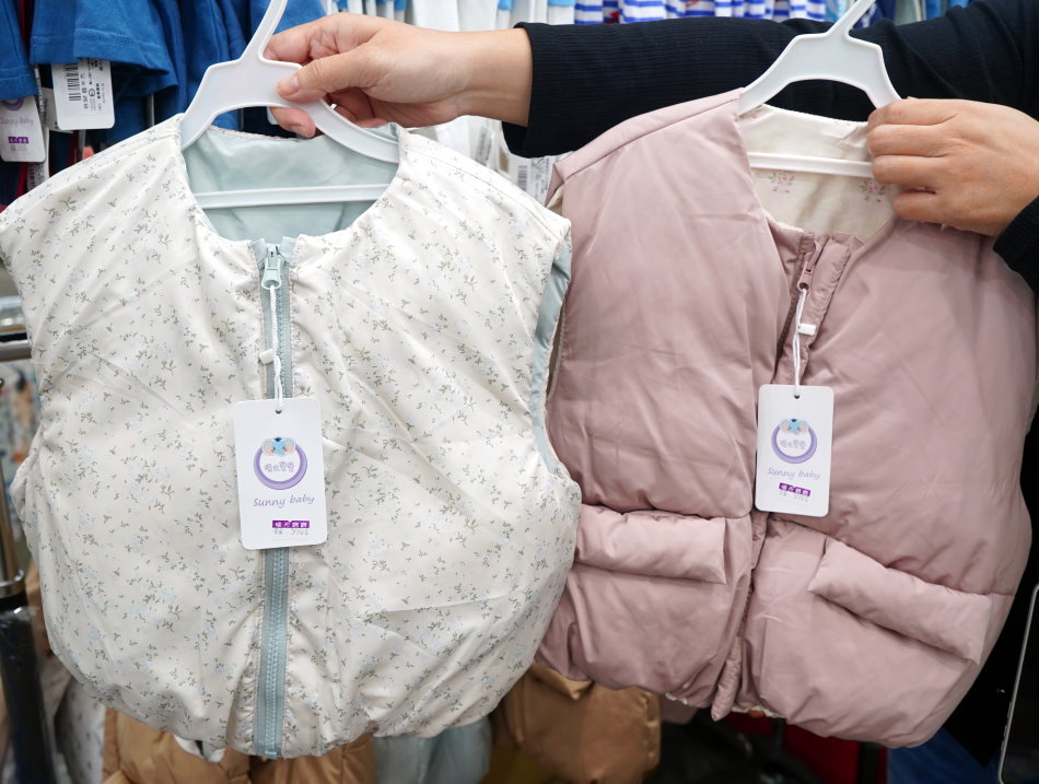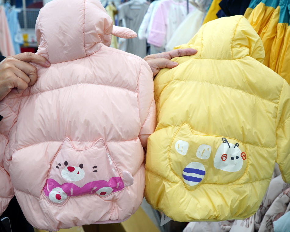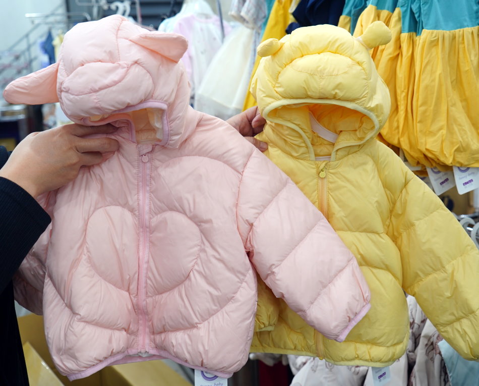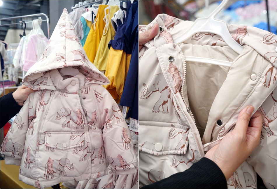 ▼新推出的寶寶羽絨外套,每件790元,裡頭有85%的鴨絨,搭配馬卡龍色系與討喜的動物圖案,穿起來輕盈又保暖,現場有四色可以選擇。