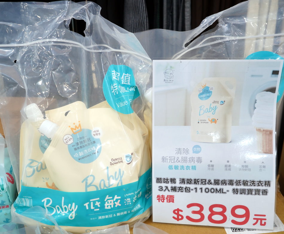 ▼酷咕鴨抗菌低敏、抗菌酵素洗衣精3入只要389元,真的很超值。