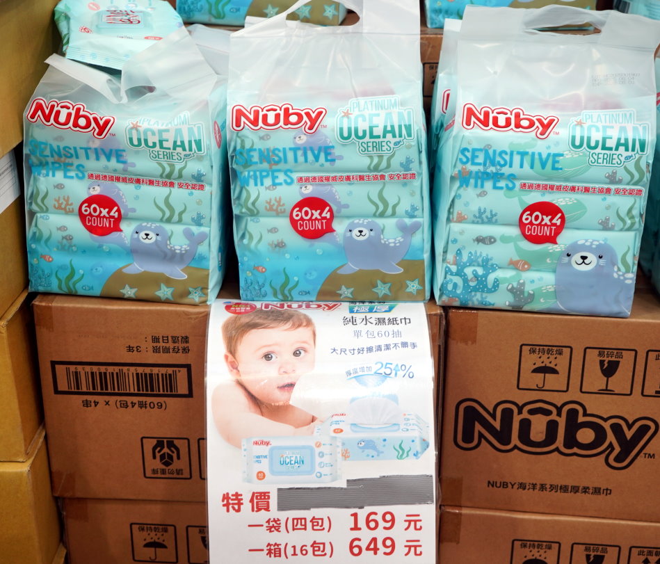 ▼Nuby極厚濕紙巾也是超級熱賣款,有嬰幼兒的家長都知道,濕紙巾是每天一定會用到的必備品,尤其這款又是純水加厚型,大尺寸的濕紙巾用起來更加方便不沾手,現場任選4包169元、16包649元,買越多越划算!