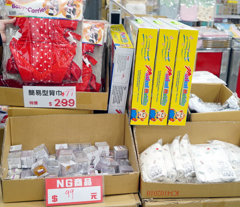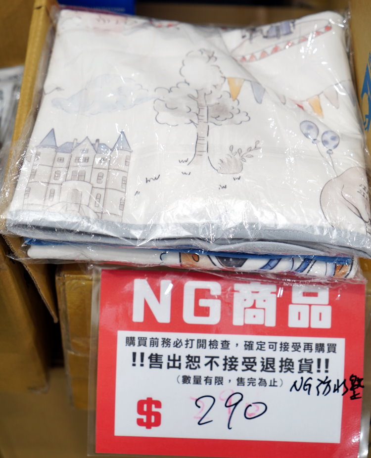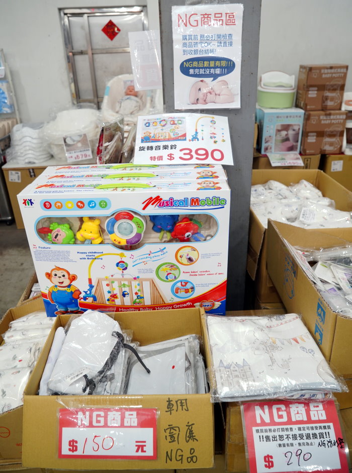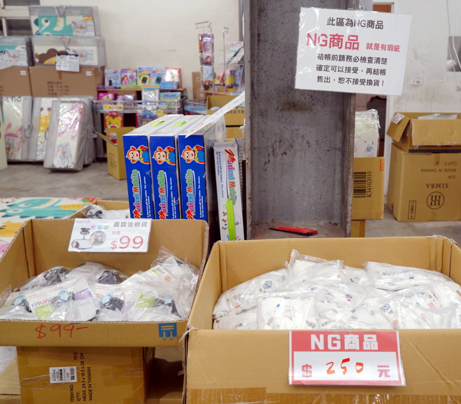 ▼NG商品區,很多商品都是有點小瑕疵或是線頭、髒污等,但不影響使用,結帳前一定要檢查清楚,確認可以接受再購買唷!