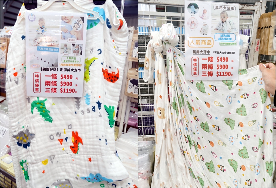 ▼大方巾、大薄巾任選一條490元、二條900元、三條1190元,當然要努力湊好湊滿才划算啊!澎澎棉大方巾(尺寸105 x 105公分),這款同樣吸力超強,輕輕擦過就非常乾爽,很適合當作小朋友洗澡用的包巾,之前一直是缺貨中的狀態,這場難得有貨,大家一定要趕緊搶購!大薄巾也是超級熱賣款,現場也有展示,大家可以實際摸摸看,就能感受到跟一般市面上買的有什麼不一樣!!