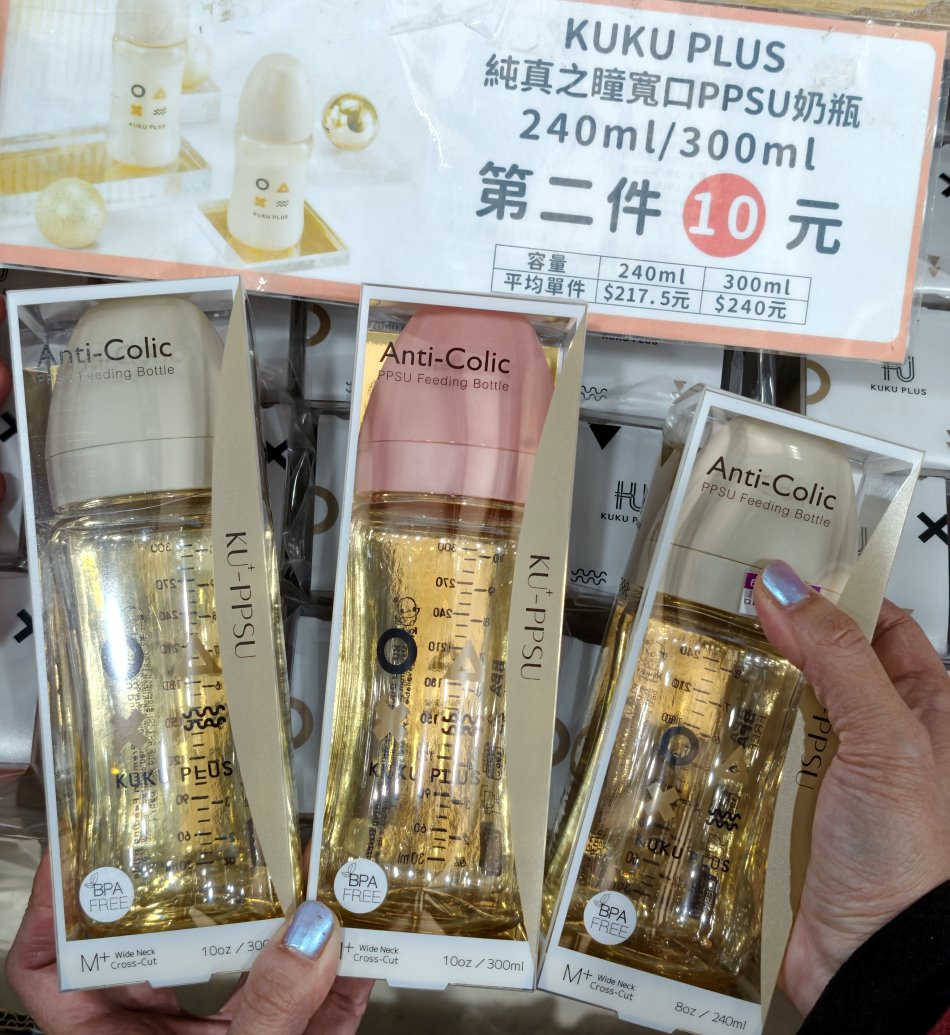 ▼KUKU PPSU 寬口奶瓶加10元多一支,可說是打到骨折不誇張,帶出門使用輕盈又方便。