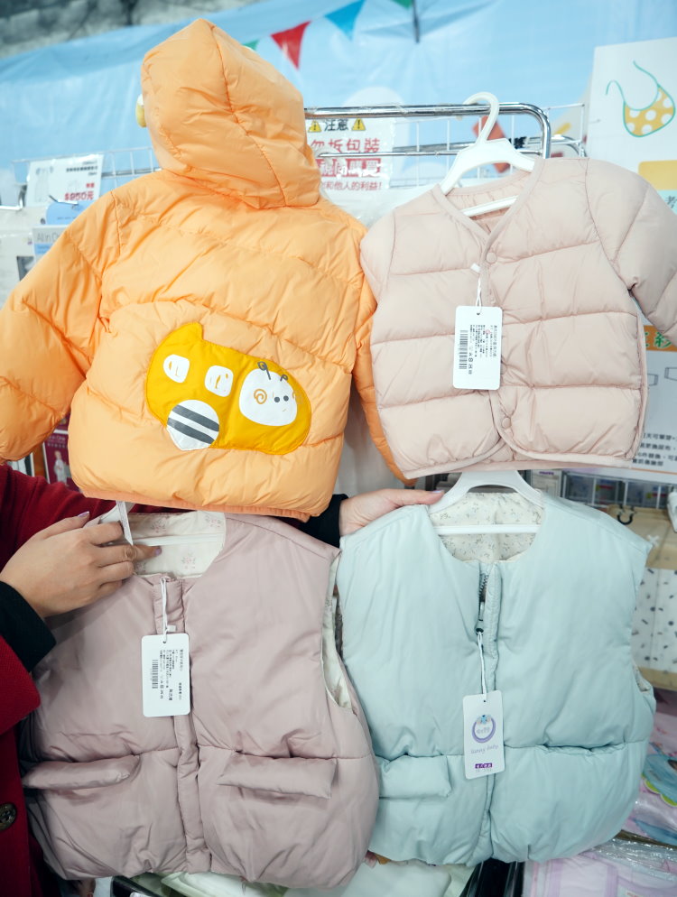 ▼新推出的寶寶羽絨外套(左上角),每件790元,裡頭有90%的鴨絨,搭配馬卡龍色系與討喜的動物圖案,穿起來輕盈又保暖;新推出的羽絨外套(右上角)粉嫩又可愛,裡頭有85%的鴨絨,扣子造型外頭也很少見,一件只要790元!雙面穿洋氣背心(下方)也是可愛又實穿,每件590元,而且可以兩面穿,還能隨心情來搭配。