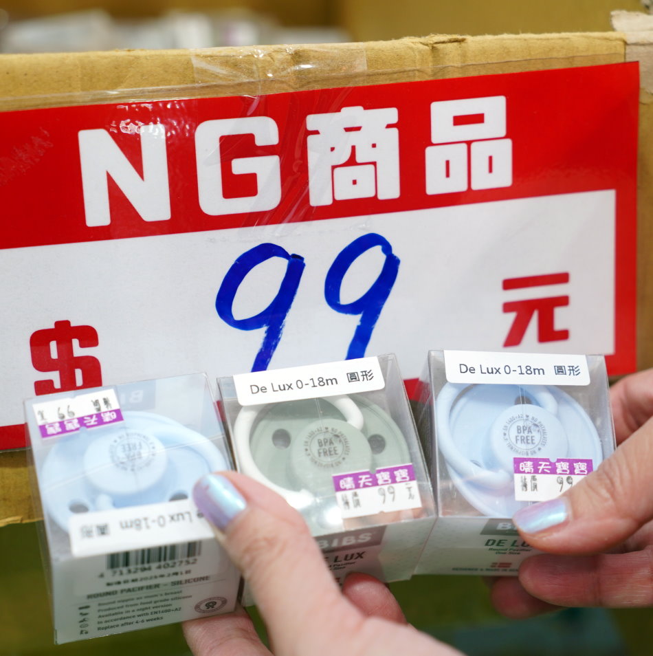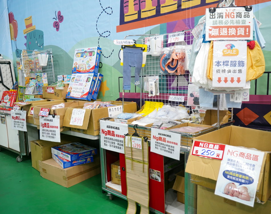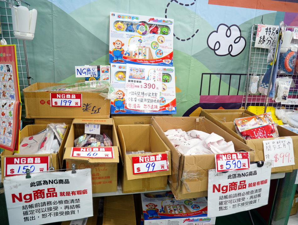 ▼NG商品區,很多商品都是有點小瑕疵或是線頭、髒污等,但不影響使用,結帳前一定要檢查清楚,確認可以接受再購買唷!